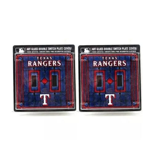 Support the Texas Rangers with the MLB Texas Rangers Baseball Official Stained Glass Double Switch Plate Cover. This red, white, and blue glass plate features the iconic Texas Rangers logo in the center.