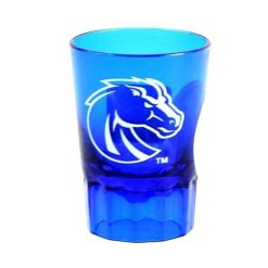 Show your team spirit with this officially licensed 2 oz blue plastic shot glass featuring the Boise State Broncos logo.